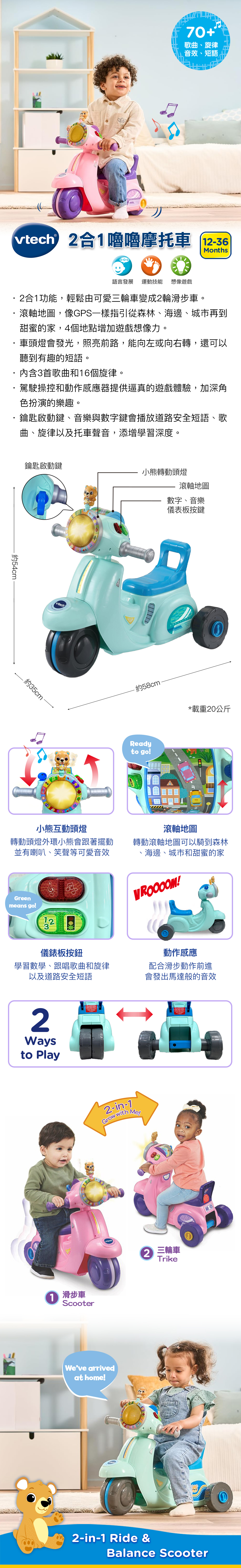 #vtech#聲光玩具#2合1#三輪車#兩輪車#滑步車#角色扮演#歌曲#英文#學習#音樂