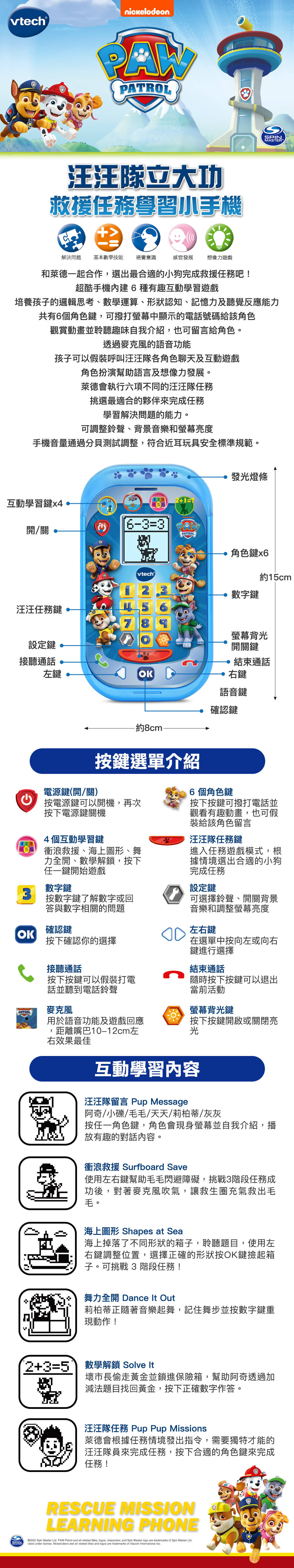 #vtech#聲光玩具#益智學習#互動#音樂#汪汪隊#小手機#救援#授權#語言#想像力#角色扮演#邏輯思考#數學運算#認知#記憶力