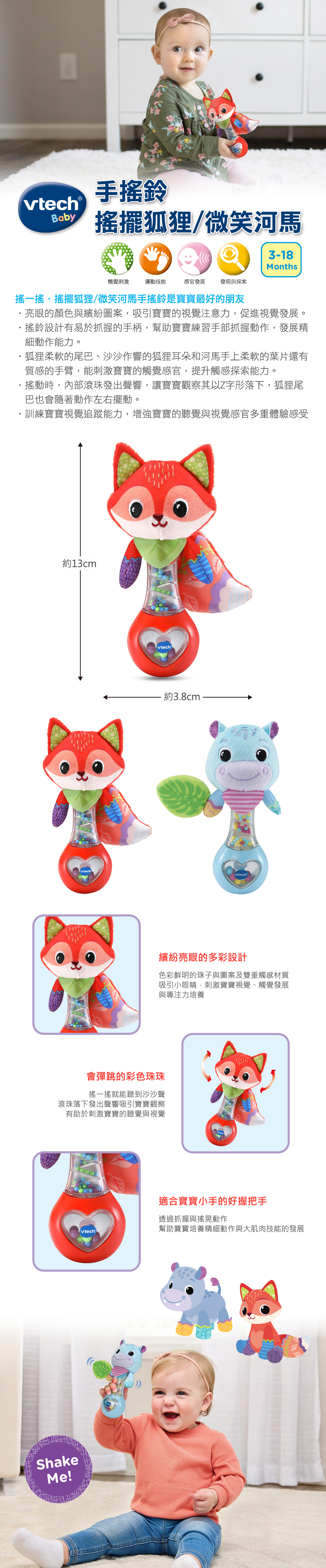#vtech#安撫玩具#抓握#視覺發展#手搖鈴#感官#寶寶#狐狸#河馬#動物